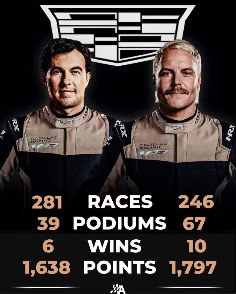 美国汽车制造商凯迪拉克周二正式宣布,博塔斯佩雷兹将成为其2026年首支F1车队的正式车手。这两位35岁的车手在2025赛季均失去了正式车手席位——佩雷斯离开红牛,博塔斯离开索伯。如今他们将携手重返赛场,用合计超过500场大奖赛经验、106次领奖台完赛和16个分站冠军头衔为这支美国车队在2026年的F1首秀保驾护航。那么,为什么是博塔斯和佩雷兹呢?不是说一老带一新吗?